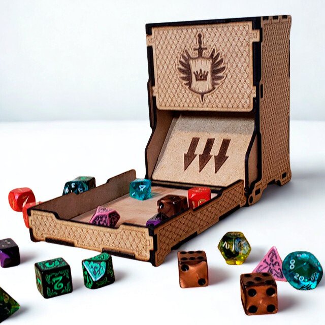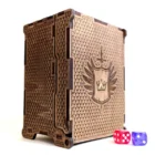 Hecha en madera y grabada con un diseño heráldico épico, es el accesorio perfecto para cualquier mesa rolera. La abrís, tirás los dados y deja que las rampas internas hagan su magia para lograr tiradas bien aleatorias y sin dados volando por todos lados.